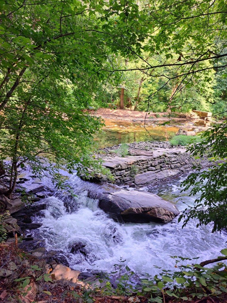 Water, particularly in river form, is a major theme of my life. Some of my earliest memories involve rivers, and looking back, I see that a lot of my dreams for my life revolve around access to rivers. This makes sense for me coming from a family of “water buffalos”, but I didn’t realize how strong this theme was until I sat on that rock by the Wissahickon Creek. There I was in a huge, populated park in a major metropolitan city experiencing a sense of calm and wholeness I didn’t realize was missing. I felt relaxed in the ocean waves or walking around the lake by my work, but this river-like creek with its clear water, towering green trees on either side, and stone bridges reaching across it elicited an echo from my past that called me to reach for my dreams again. I want to feel the flow of my life, connected in all its disparate experiences. I want to feel the power and energy of my life forging paths into the earth where I travel in creativity and in love, bringing refreshment to those who travel alongside me.